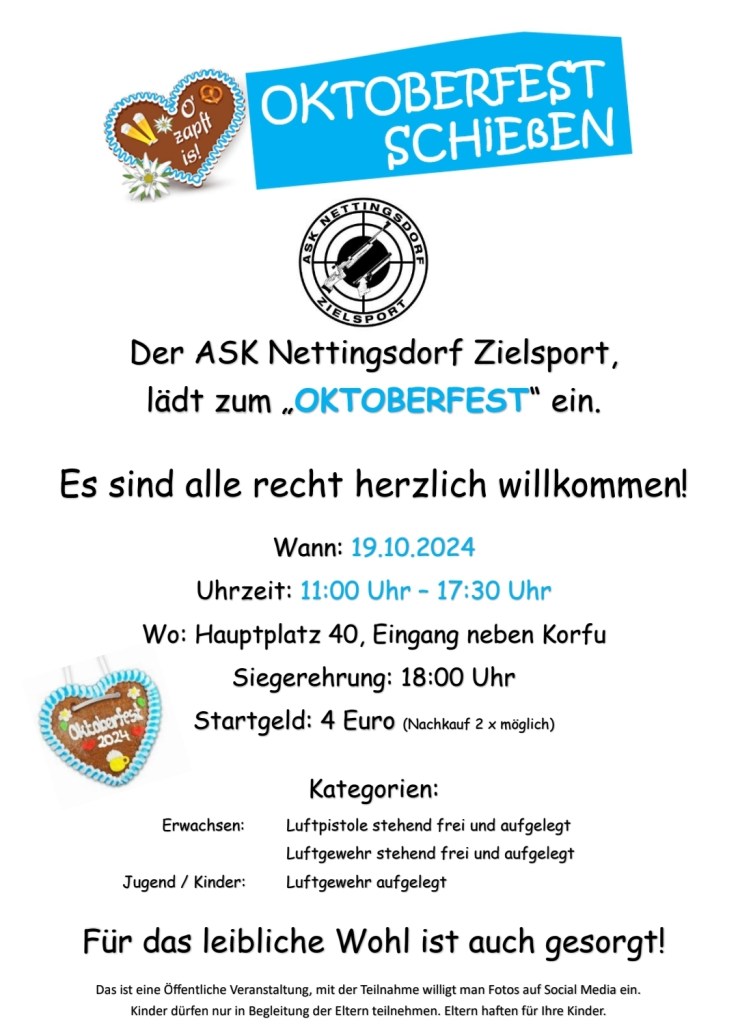 Der ASK Nettingsdorf Zielsport lädt zum ,,Osterschießen“ ein. Am 23.03.24 von 13:00 – 17:30 in Haid beim Hauptplatz 40, Eingang neben Korfu.